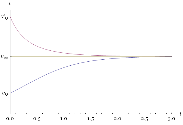 voo è la "velocità limite", cioè la velocità raggiunta a regime. Se v0 è la velocità iniziale del sommergibile, vediamo che in pochi secondi va a regime (il tempo impiegato dipende dal modello utilizzato). È chiaro che tale velocità di regime è un attrattore nello spazio delle configurazioni per questo modello, però pur avendo un sistema non lineare non c'è traccia di dipendenza sensibile dalle condizioni iniziali che, come è noto, compone una condizione necessaria (ma non sufficiente) affinchè un sistema dinamico sia caotico.