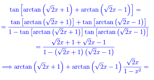 A questo punto utilizziamo le note formule di addizione degli archi: