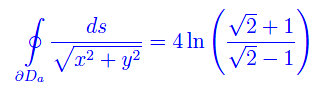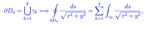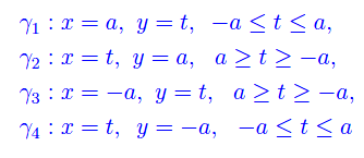 Risolvendo questo secondo integrale del Flaccavento, vediamo che il risultato non dipende dal parametro a che fissa la dimensione del quadrato, quale cammino di integrazione. Quest'ultimo è una curva generalmente regolare semplice e chiusa. Precisamente, è l'unione di quattro segmenti.