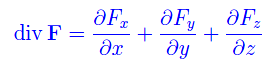 che definisce la divergenza localmente, cioè indipendentemente dalle componenti cartesiane del vettore F. In tal modo la divergenza di un campo vettoriale in un generico punto P, è il limite del rapporto tra il flusso del campo attraverso una piccola superficie che racchiude P, e il volume delimitato da tale superficie.