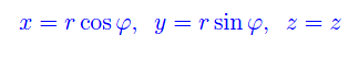 Le coordinate cilindriche di un punto P dello spazio ordinario R³ sono (r,φ,z) come illustrato in fig.1 da cui ricaviamo le equazioni di trasformazione che realizzano la trasformazione di coordinate da cartesiane a cilindriche.