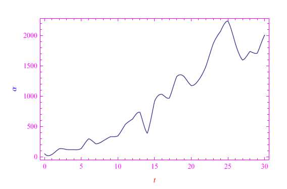 Eseguendo un'interpolazione con Mathematica, otteniamo una funzione αint(t) il cui grafico è riportato in fig.