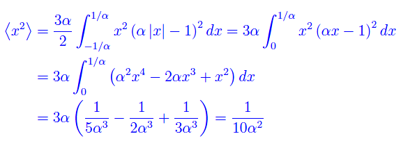 che può essere prolungata per continuità in x=±1/a, avendosi ρ0(±1/a)=0. La funzione ρ0(x) è manifestamente pari e il suo grafico in [-1/a,1/a] è l'unione di due archi di parabola aventi vertici in (±1/a,0) rispettivamente. Ad occhio vediamo che