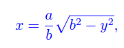La seconda radice non ci interessa, per cui la scartiamo. L'ordinata del punto di intersezione è ovviamente y1=x1. L'area richiesta altro non è che la misura del dominio di fig. 1 che si potrebbe partizionare in due domini normali rispetto all'asse x. In realtà tale dominio è normale anche rispetto all'asse y. Infatti, se nell'equazione dell'ellisse esprimiamo la variabile x in funzione di y, si ha: