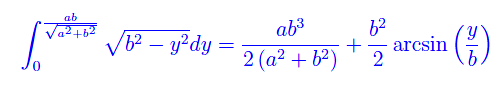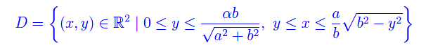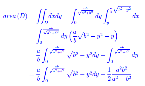 Calcolare l'area della regione del piano limitata dal semiasse positivo delle x, dall'ellisse di semiassi a e b e dalla retta di equazione x=y (fig. 1).
