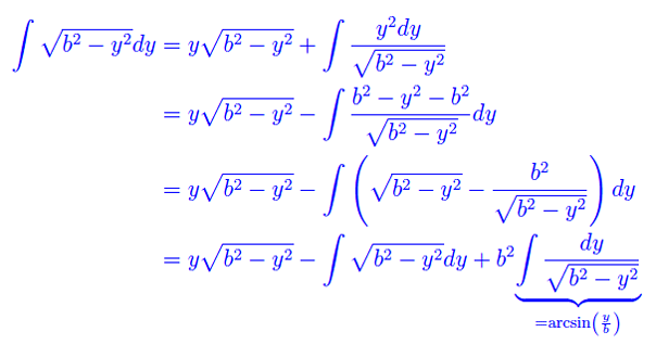 Calcoliamo a parte l'integrale rimasto inespresso a secondo membro dell'equazione appena scritta. Riferiamoci all'integrale indefinito, eseguendo un'integrazione per parti: