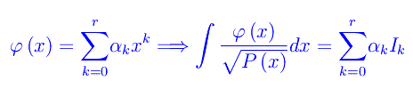 che esprime I4 attraverso I3,I2,I1. Iterando il procedimento vediamo dunque che per un qualunque k intero positivo, Ik si esprime attraverso I0,I1. Denotando con r il grado del polinomio φ(x), si ha: