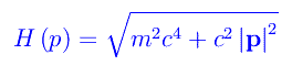 Qui H è la funzione hamiltoniana della particella. Dalla meccanica relativistica, sappiamo che per una particella libera