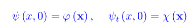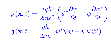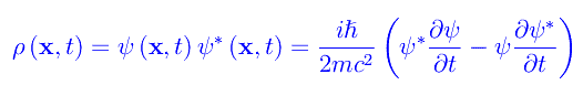 Siamo tentati a chiamare ρ «densità di probabilità», ma la presenza della derivata seconda rispetto al tempo nella K-G porta a una inconsistenza. Precisamente, dal momento che l'equazione del secondo ordine e «somiglia» alla D'Alembert, si ha che un problema di Cauchy è caratterizzato da condizioni iniziali (con ovvio significato dei simboli):