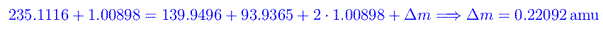 a) A U-235 nucleus is bombarded by a neutron, resulting in its fission into barium 137 and krypton 97 nuclei. Write the reaction and compute the energy released.