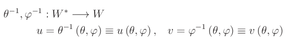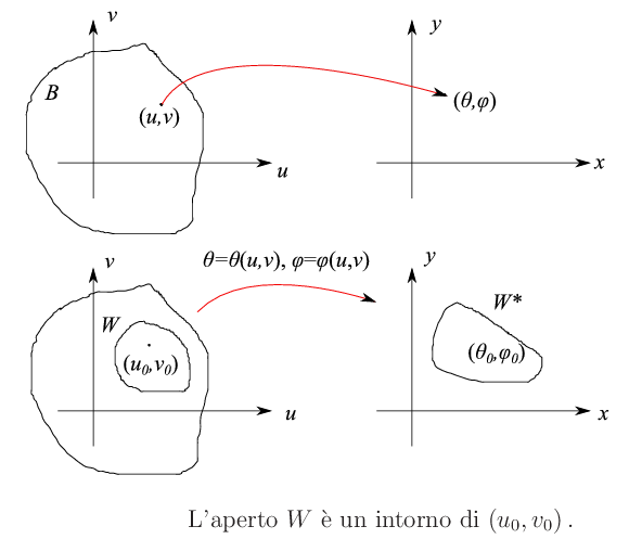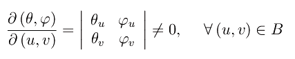 In altre parole, per il teorema del Dini la restrizione di θ(u,v),φ(u,v) all'aperto W è bi-iettiva, quindi invertibile: