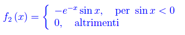 In parole semplici, la funzione oscilla sinusoidalmente tra le curve esponenziali e^(-x) ed -e^(-x), come illustrato in fig. 1. Inoltre, la funzione si annulla infinite volte e i suoi zeri sono: